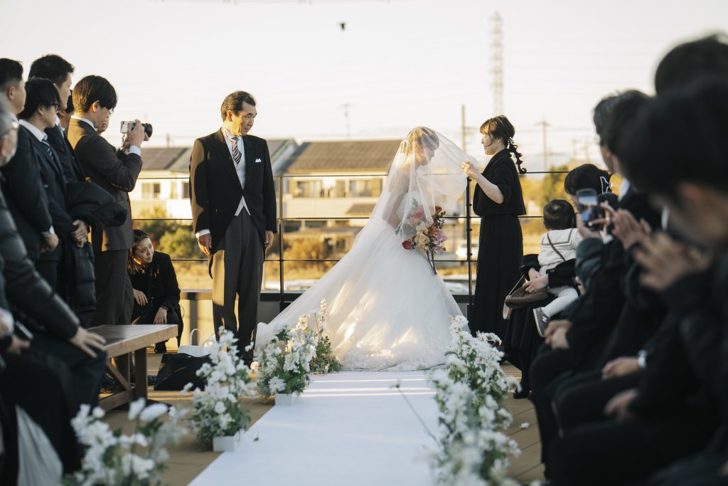 ある新婦様は「誓いの言葉を言っているとき、ふと木々が風に揺れて、まるで自然が応援してくれているみたいだった」と語ってくれました。計算された演出では決して生まれない、自然が作り出す偶然の美しさ。